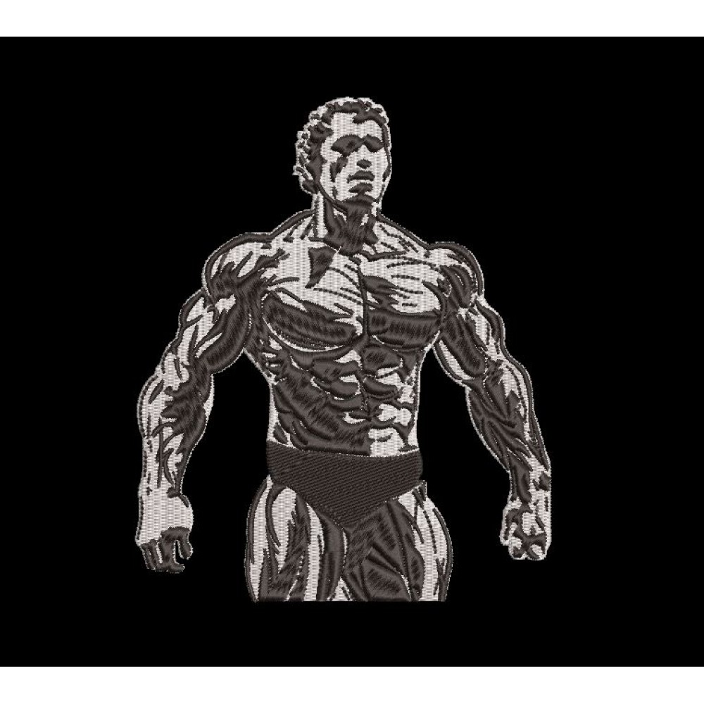 Дизайн для вышивальных машин «Арнольд бодибилдер» подойдет для различной одежды и аксессуаров.