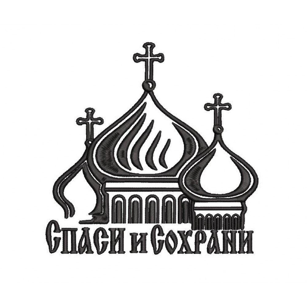 Дизайн для вышивальных машин «Церковь спаси и сохрани» подойдет для различной одежды и аксессуаров.