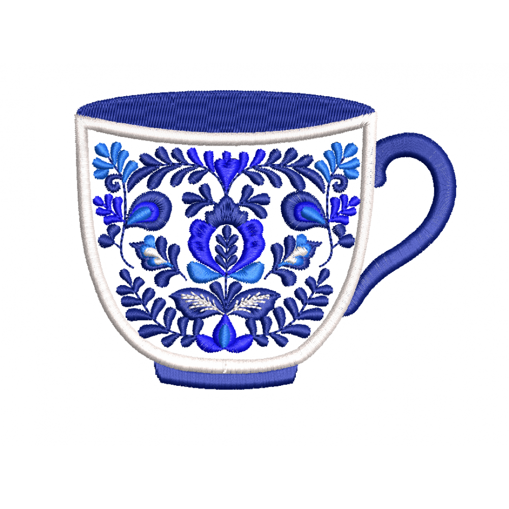 Дизайн для вышивальных машин «Чашка гжель» подойдет для различной одежды и аксессуаров.