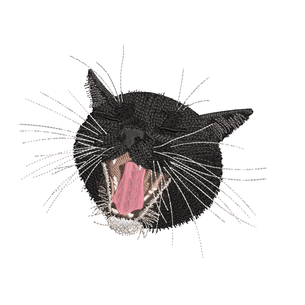 Дизайн для вышивальных машин «Черный котик зевака» подойдет для различной одежды и аксессуаров.