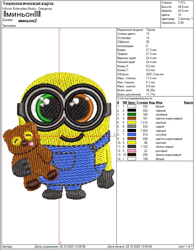 Технические характеристики Файл вышивки Довольный миньон
