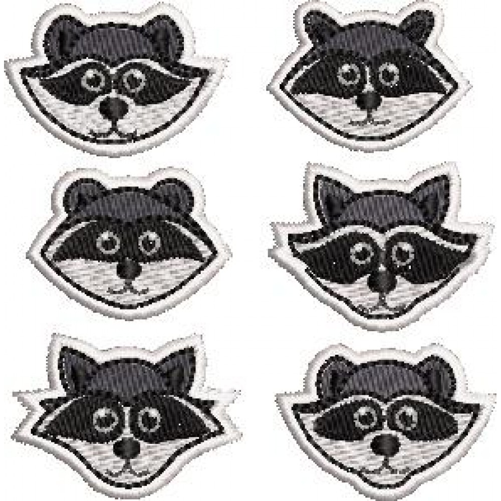 Дизайн для вышивальных машин «Еноты (набор из 6 вышивок)» подойдет для различной одежды и аксессуаров.