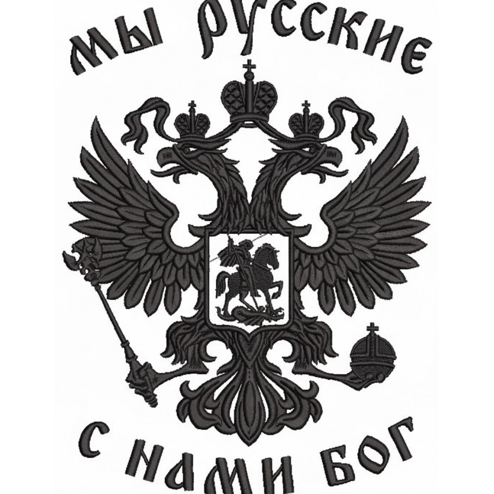 Файл вышивки Герб РФ с надписью мы русские с нами бог