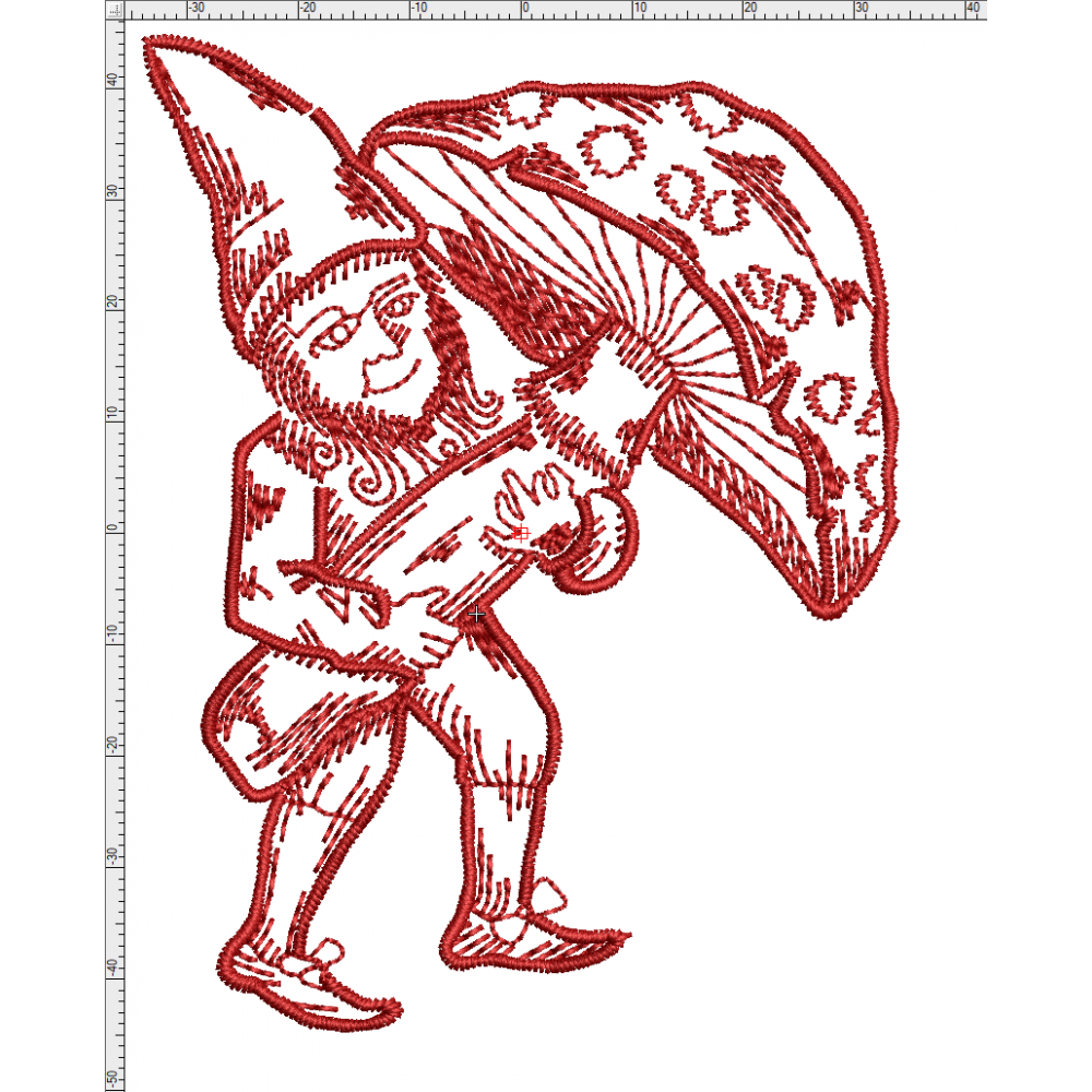 Дизайн для вышивальных машин «Гномик и грибочек» подойдет для различной одежды и аксессуаров.