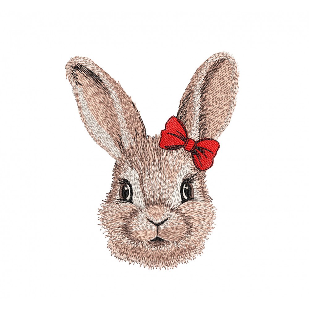 Очаровательный зайчик с большими ушами, украшенными ярким алым бантом. Дизайн передаёт нежность, игривость и идеально подходит для создания милых и трогательных проектов.