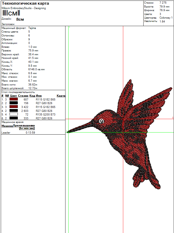 Дизайн для вышивальных машин «Колибри в полете» подойдет для различной одежды и аксессуаров.