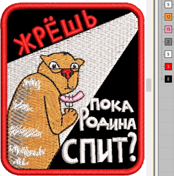 Дизайн для вышивальных машин «Кот жрет» подойдет для различной одежды и аксессуаров.