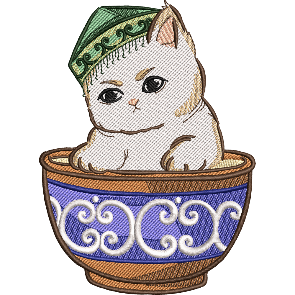 Дизайн для вышивальных машин «Кот в кисейке» подойдет для различной одежды и аксессуаров.