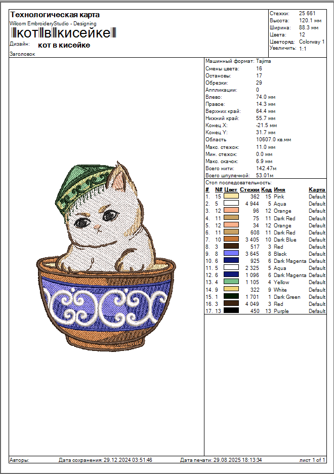 Размер дизайна, мм88х120 | Количество стежков25600 | Количество цветов12 |