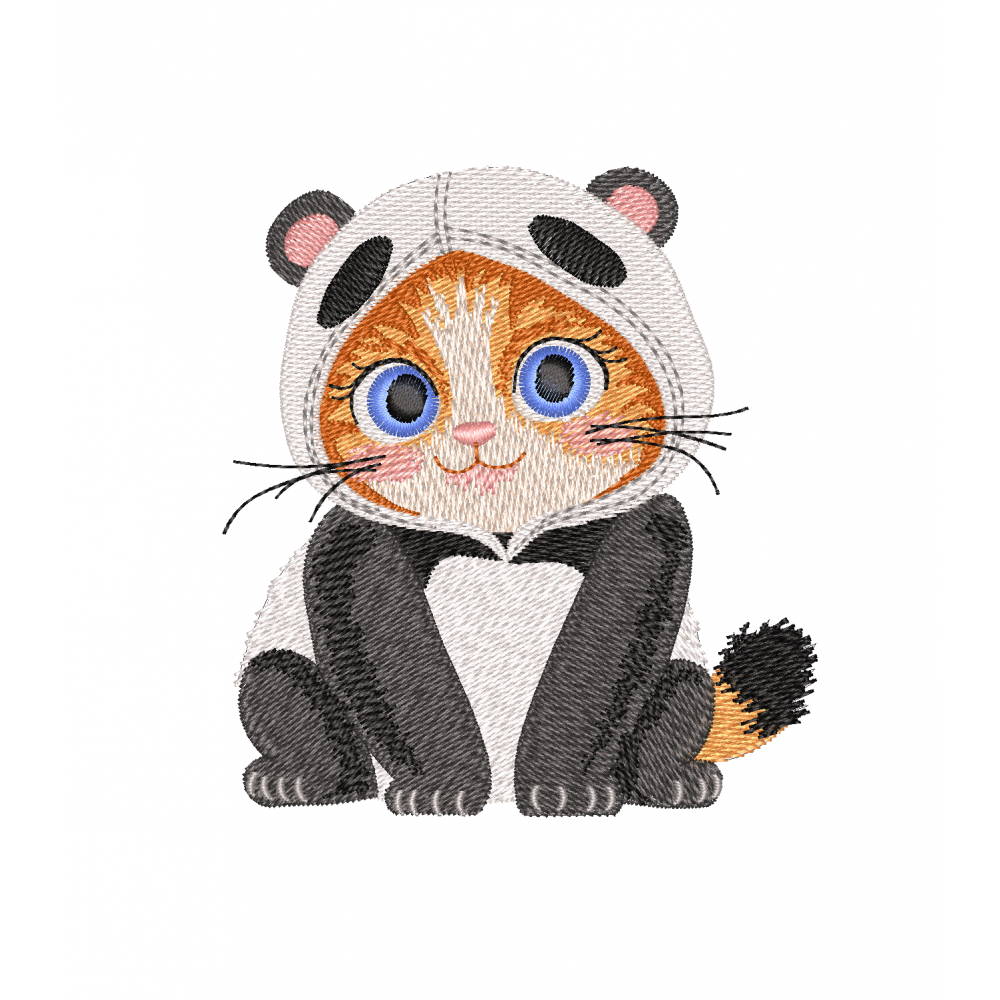Дизайн для вышивальных машин «Котик в костюме панды» подойдет для различной одежды и аксессуаров.