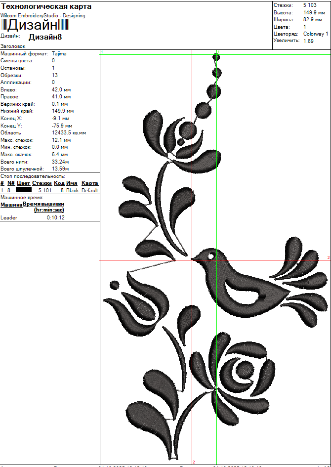 Технические характеристики Файл вышивки Курочка и цветочки хохлома