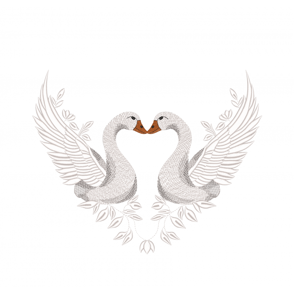 Дизайн для вышивальных машин «Лебеди любви» подойдет для различной одежды и аксессуаров.