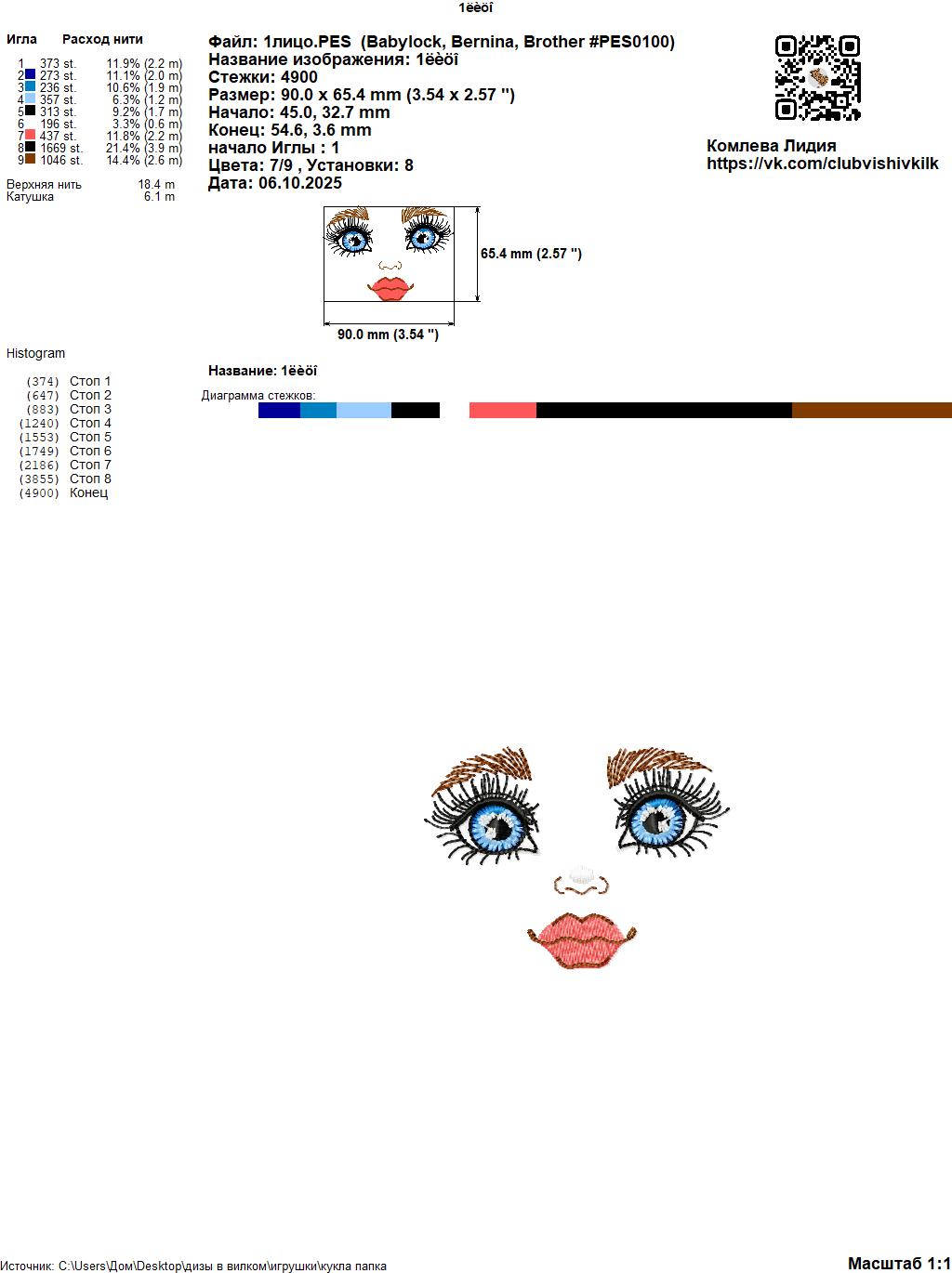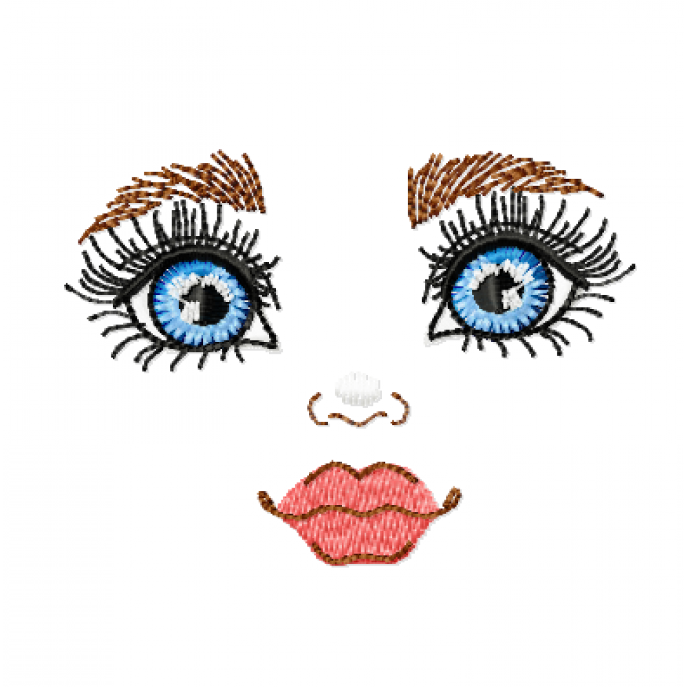 Дизайн для вышивальных машин «Лицо куколки» подойдет для различной одежды и аксессуаров.
