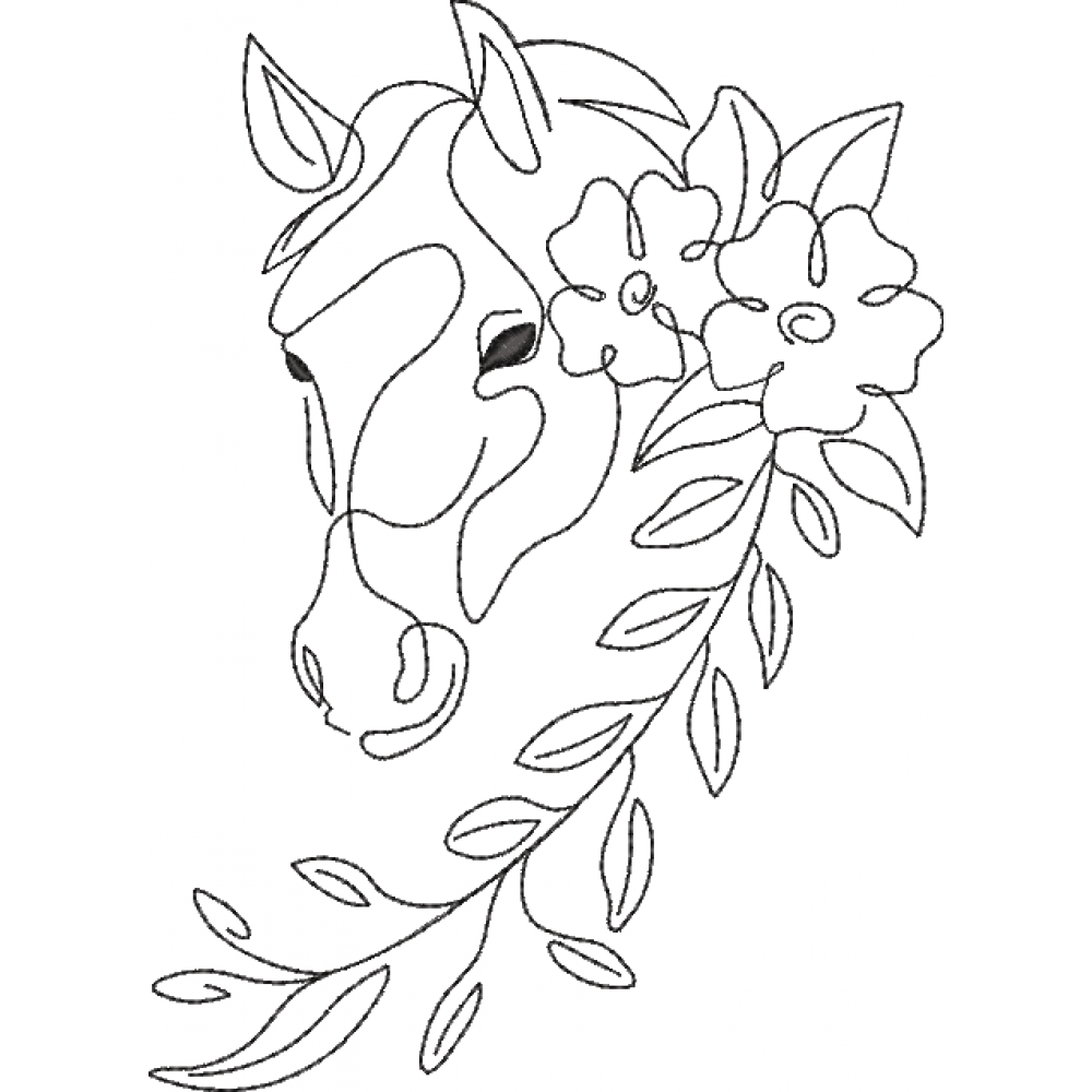Технические характеристики Файл вышивки Лошадь с цветами строчкой