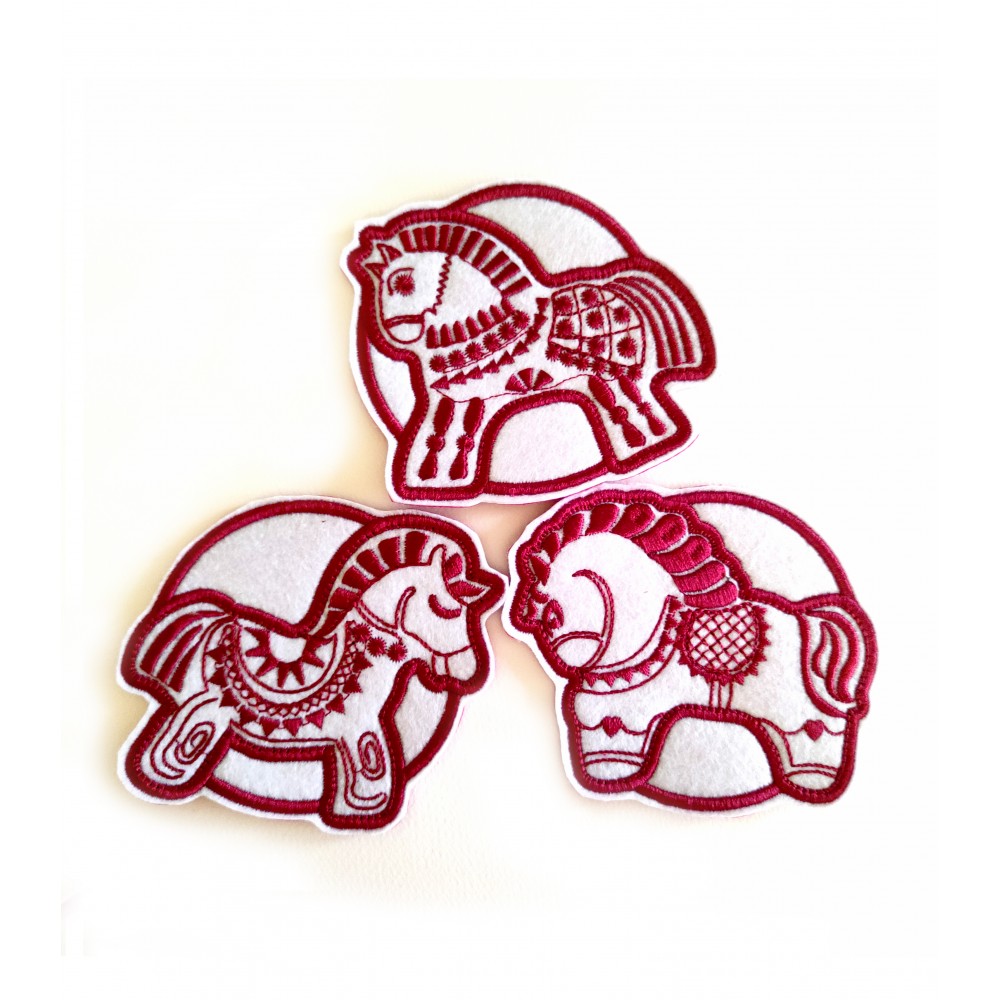 Дизайн для вышивальных машин «Лошадки-подстаканники» подойдет для различной одежды и аксессуаров.