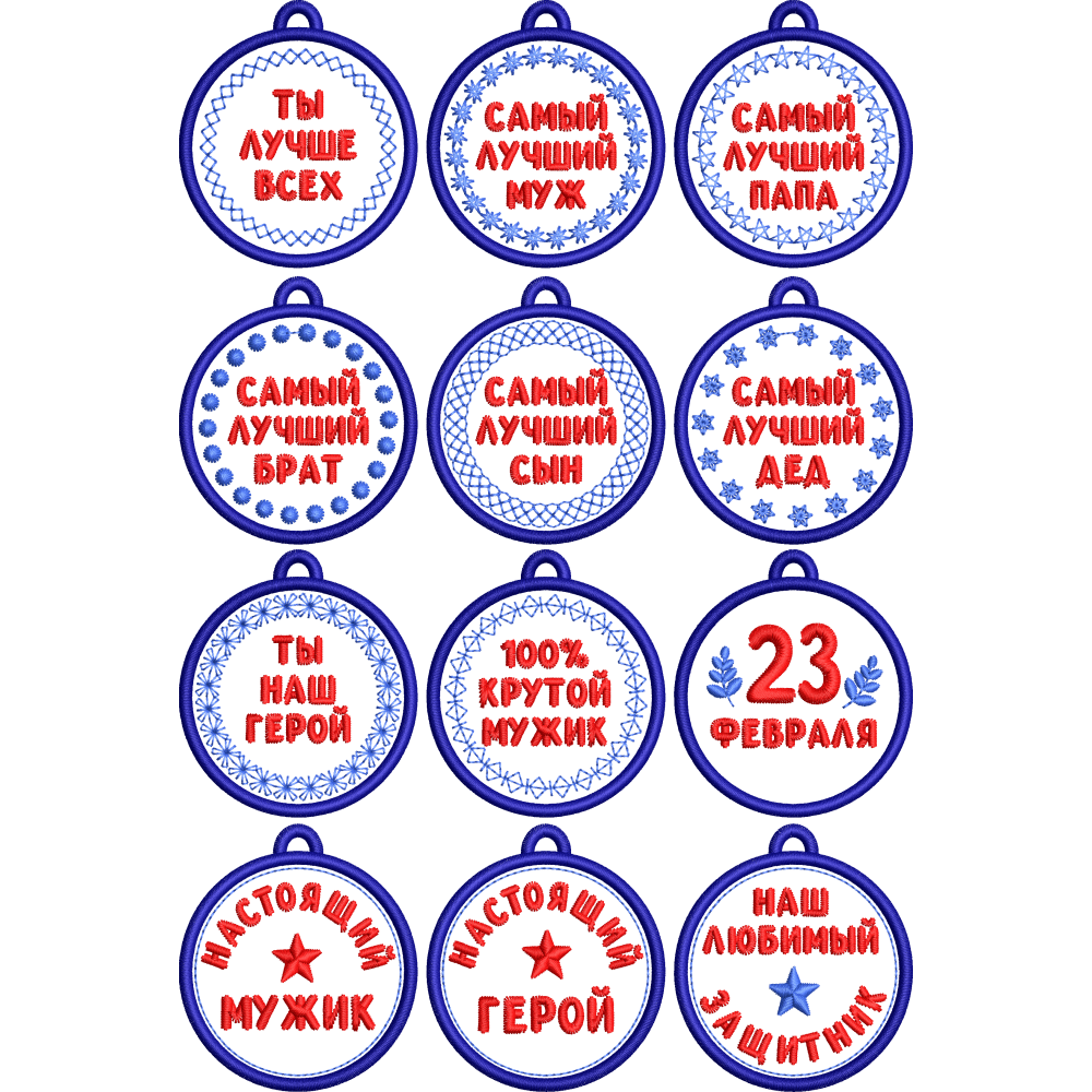 Дизайн для вышивальных машин «Медали на 23 февраля» подойдет для различной одежды и аксессуаров.