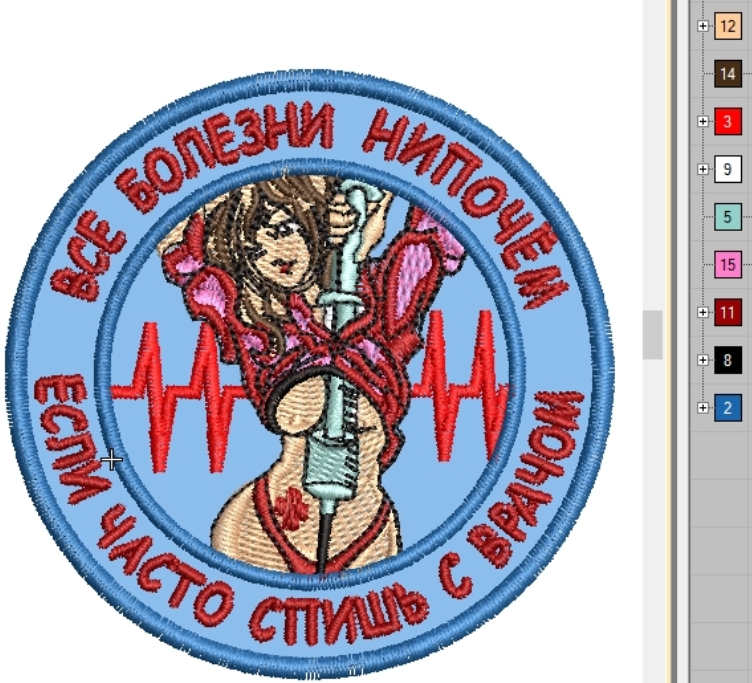 Дизайн для вышивальных машин «Медик. болезни нипочём» подойдет для различной одежды и аксессуаров.