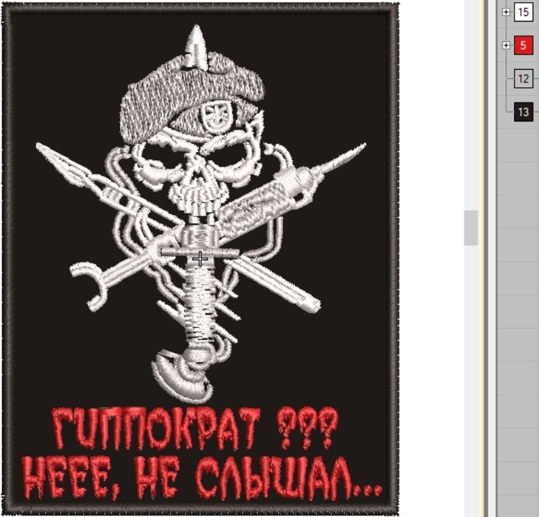 Дизайн для вышивальных машин «Медик, гиппократ, такмед.» подойдет для различной одежды и аксессуаров.