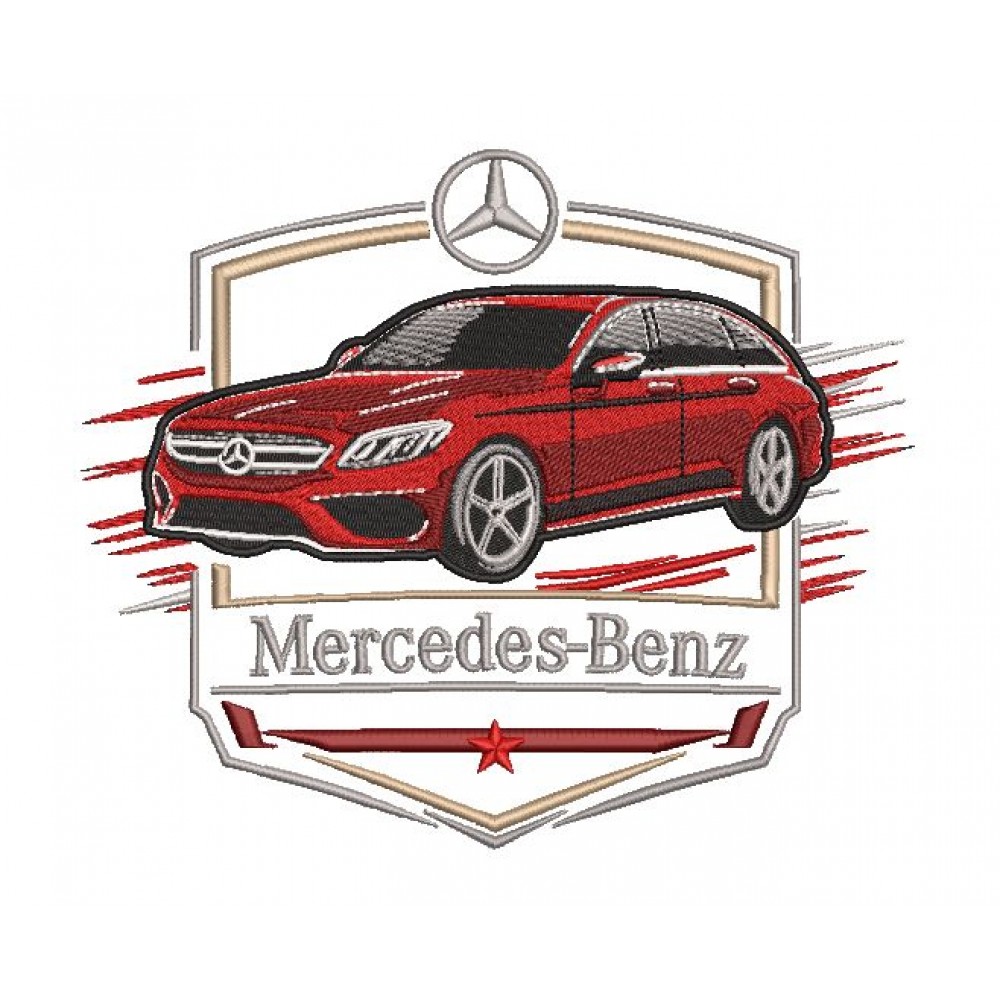 Дизайн для вышивальных машин «Mercedes-benz 20см логотип мерседес с автомобилем » подойдет для различной одежды и аксессуаров.