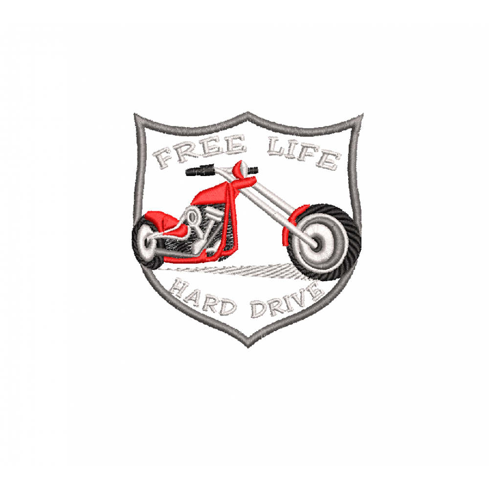 Дизайн для вышивальных машин «Мотоцикл эмблема» подойдет для различной одежды и аксессуаров.