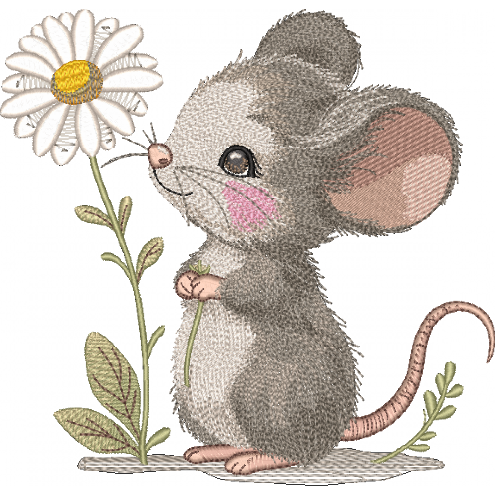 Файл вышивки Мышка с ромашкой