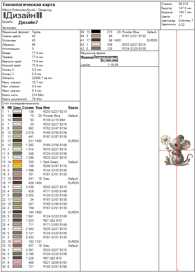 Технические характеристики Файл вышивки Мышка с ромашкой