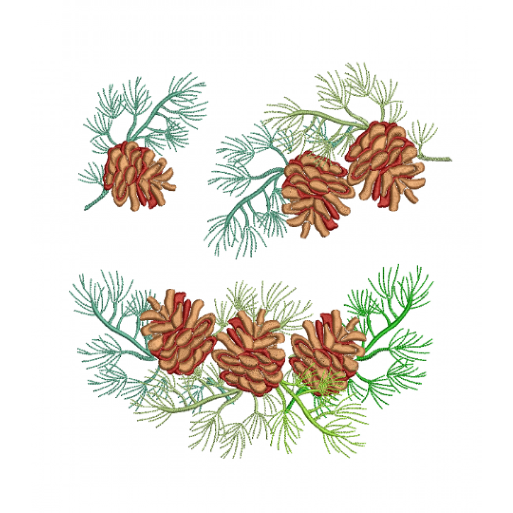 Дизайн для вышивальных машин «Набор сосновые шишки 2» подойдет для различной одежды и аксессуаров.