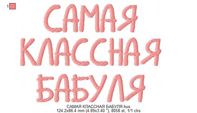 Технические характеристики Файл вышивки Надпись САМАЯ КЛАССНАЯ БАБУЛЯ