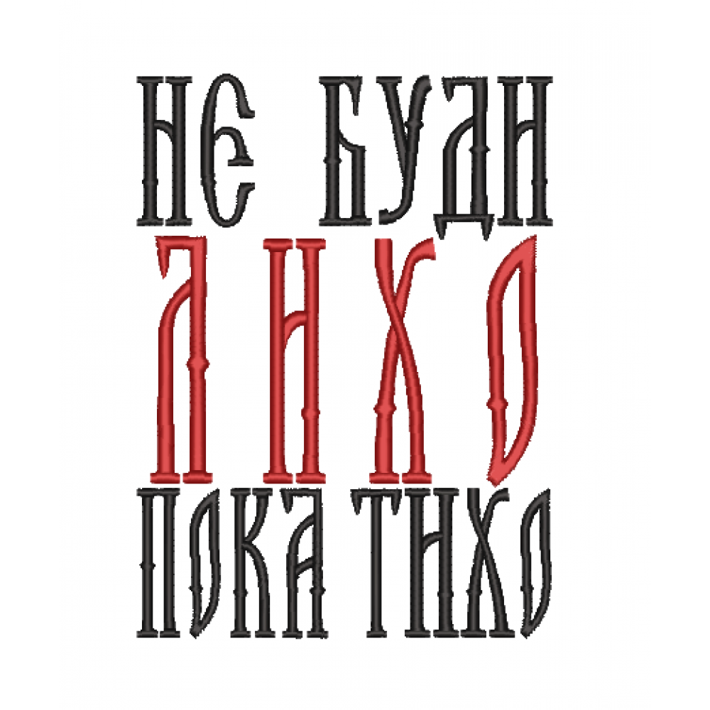 Дизайн для вышивальных машин «не буди лихо пока тихо» подойдет для различной одежды и аксессуаров. Скачать вышивку можно после оплаты на сайте. Параметры и формат файла указаны в характеристике дизайна.