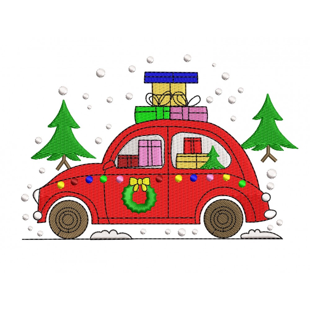 Дизайн для вышивальных машин «Новогоднее авто» подойдет для различной одежды и аксессуаров.