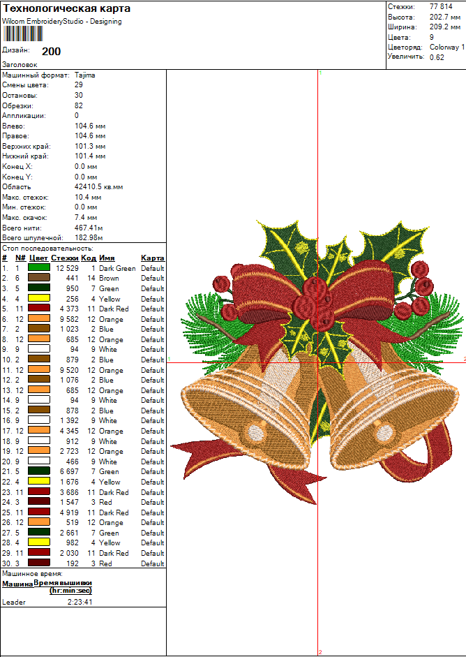Технические характеристики Файл вышивки Новогодние колокольчики с лентой