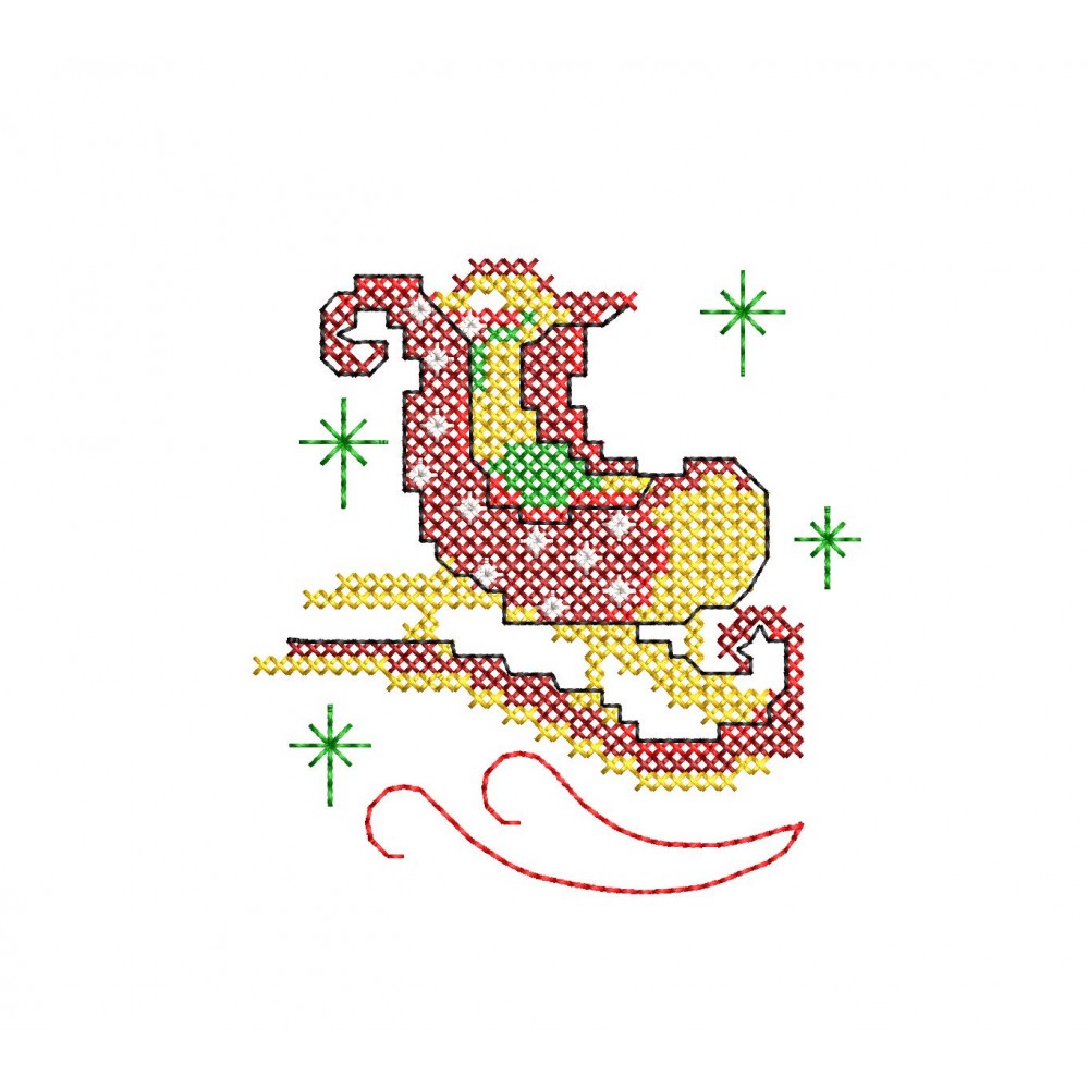 Очаровательный рождественский сапожок, выполненный в технике креста. Идеальный проект для быстрого завершения, создания праздничных аксессуаров или мини-подарков.