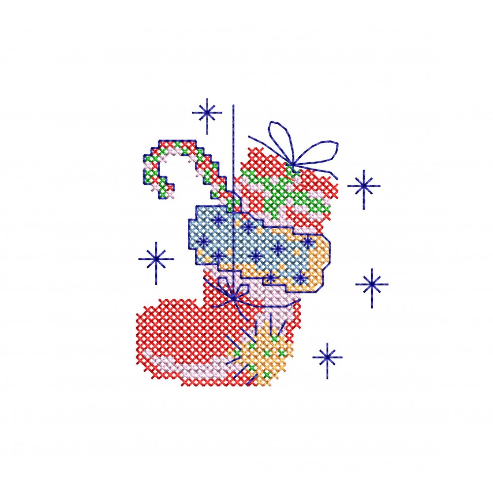 Дизайн для вышивальных машин «Новогодний сапожок» подойдет для различной одежды и аксессуаров.