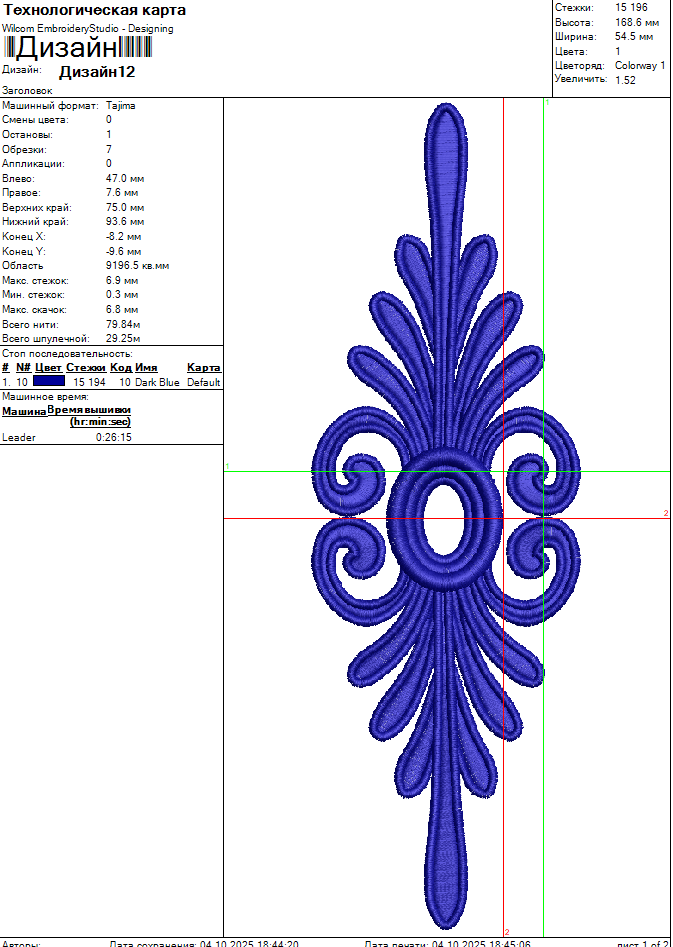 Технические характеристики Файл вышивки Орнамент вензеля симетрия
