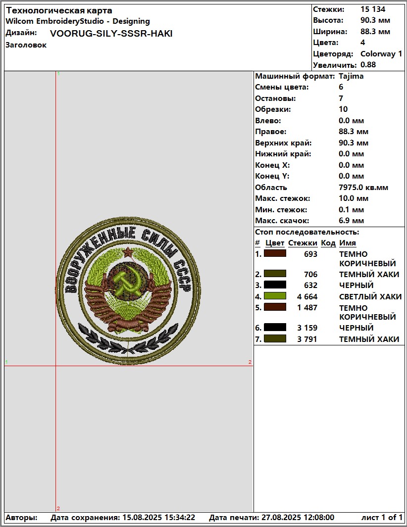 Технические характеристики Файл вышивки Шеврон "Вооруженные силы СССР" полевой