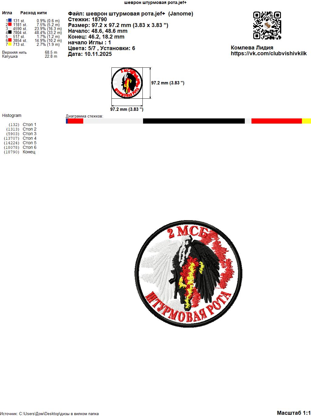Технические характеристики Файл вышивки шеврон штурмовая рота