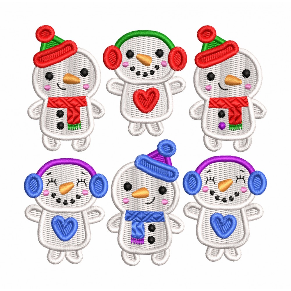 Дизайн для вышивальных машин «Снеговики для термонашивки» подойдет для различной одежды и аксессуаров.