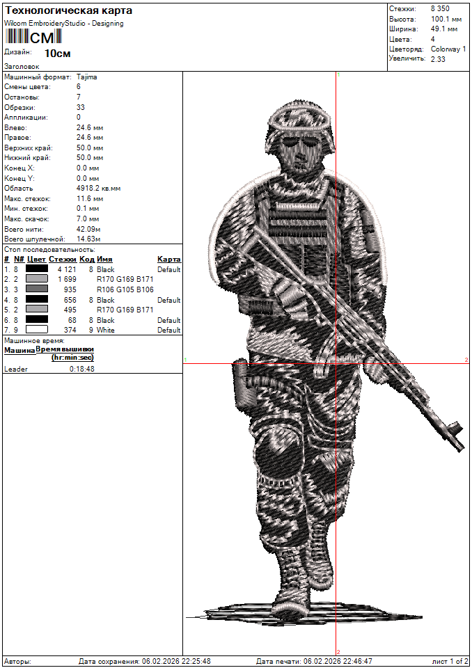 Технические характеристики Файл вышивки Солдат для шеврона