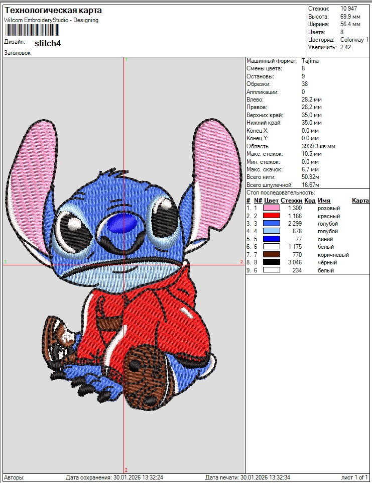 Технические характеристики Файл вышивки Stitch в красной толстовке