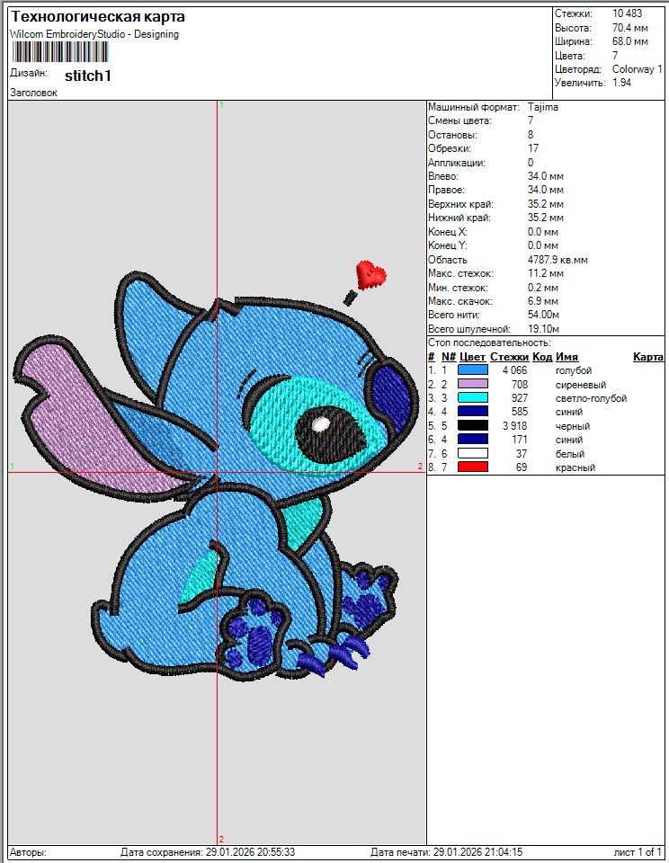 Дизайн для вышивальных машин «Stitch влюбленный» подойдет для различной одежды и аксессуаров.