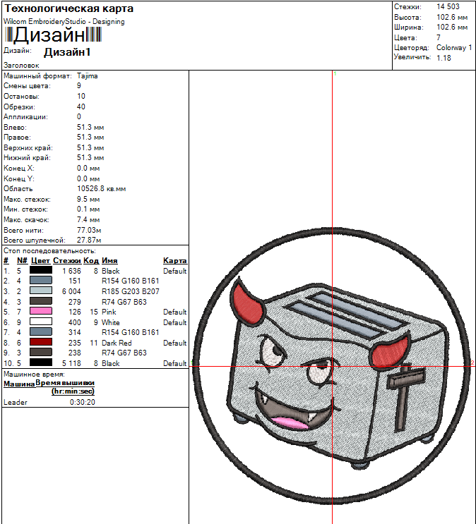 Технические характеристики Файл вышивки Тостер Нашивка