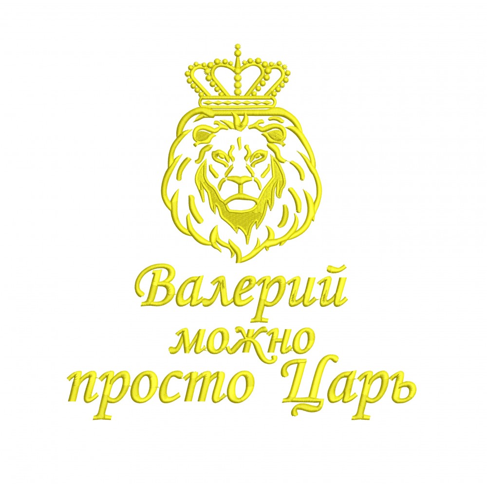 Файл вышивки Лев с надписью "Валерий, можно просто царь"