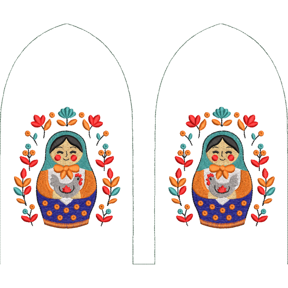 Дизайн для вышивальных машин «Варежки матрешка» подойдет для различной одежды и аксессуаров.