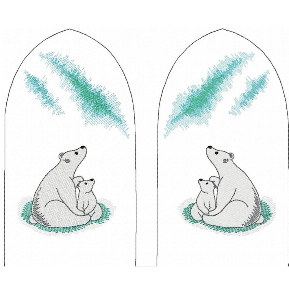 Файл вышивки Варежки "Белые медведи и северное сияние"