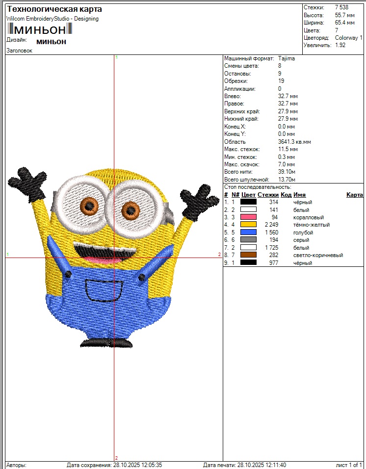 Дизайн для вышивальных машин «Веселый миньон» подойдет для различной одежды и аксессуаров.