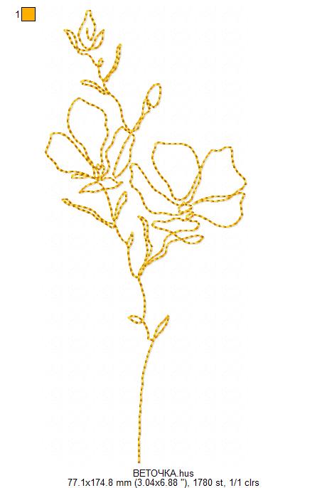 Технические характеристики Файл вышивки Веточка с цветами (линия)