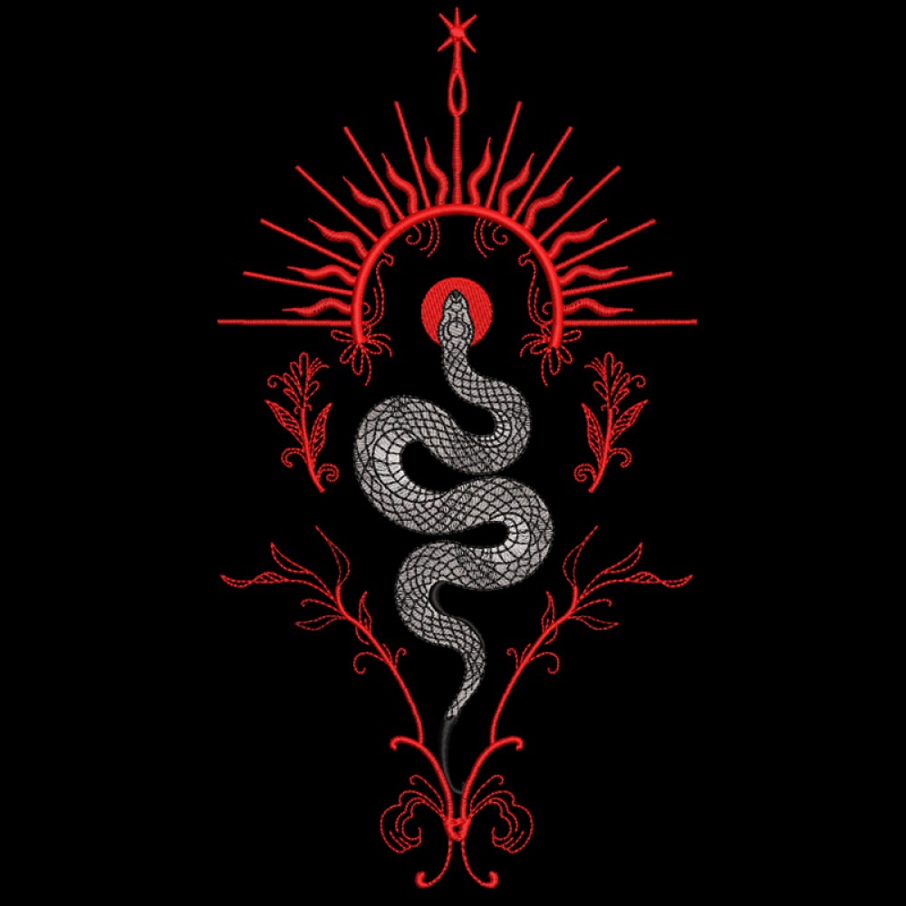 Дизайн для вышивальных машин «Змея и орнамент» подойдет для различной одежды и аксессуаров.
